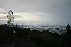 Mtatsminda Park is a landscaped park located at the top of Mount Mtatsminda overlooking the Georgian capital Tbilisi. The park has carousels, water slides, a roller-coaster, dark ride, funicular, and a big Ferris wheel at the edge of the mountain, offering a splendid view over the city.[1]