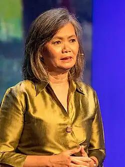 Mu Sochua (Khmer: មូរ សុខហួ; born 15 May 1954) is a Cambodian politician and rights activist. She was a Member of Parliament (MP) for Battambang from 2013 to 2017, a seat which she previously held from 1998 to 2003. She was a member and Vice President of the Cambodia National Rescue Party (CNRP) until its dissolution, and previously a member of the Sam Rainsy Party (SRP) prior to its merger with the Human Rights Party. As a member of FUNCINPEC, she also served as Minister of Women and Veterans' Affairs in Hun Sen's coalition government from 1998 to 2004. She is currently one of 118 senior opposition figures serving a five-year ban from politics following a court ruling on 16 November 2017.[4]
