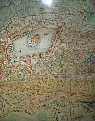 To the east of the palace were seven terrace gardens, accessible from the various palace buildings. They were separated from each other by walls.