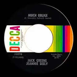 - ^ a b c Greene, Jack; Seely, Jeannie (November 1971). ""Much Oblige"/"The First Day" (7" vinyl single)". Decca Records. 32898.
