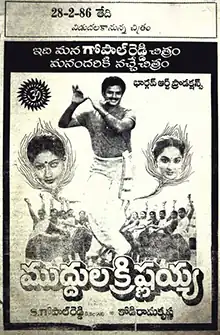 Muddula Krishnayya is a 1986 Telugu-language film produced by S.Gopal Reddy under the Bhargav Art Productions banner[2] and directed by Kodi Ramakrishna.[3] It stars Nandamuri Balakrishna, Vijayashanti, Radha[4] and music composed by K. V. Mahadevan.[5][6]