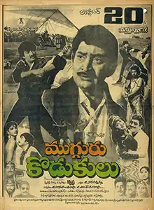 Mugguru Kodukulu (transl. Three sons) is a 1988 Indian Telugu-language action drama film directed by Krishna. The film stars Krishna himself alongside his real-life children, Ramesh Babu and Mahesh Babu. Radha, and Sonam play the female leads. The film was produced by Ghattamaneni Nagarathnamma under the Padmalaya Studios banner. Music was composed by Chakravarthy. The film was a box office success.[1]