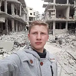 Muhammad Najem (born 2002) is a Syrian war reporter and activist who has been documenting the Syrian civil war since the age of 15.[1][2][3] In December 2017, his home of Ghouta, a suburb of Damascus, was besieged by the Syrian Army, and Najem told his family he wanted to tell their story. They decided to release English-language videos on YouTube featuring Najem, assisted by his older brother Firas, a photojournalist, and their sister Hiba, a teacher, who helped translate.[4] His videos attained a wide audience in February 2018, when CNN producer Nora Neus picked up his story.[5][4] Shortly after, RT ran a story accusing him of being a "crisis actor".[4]
