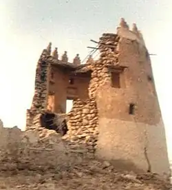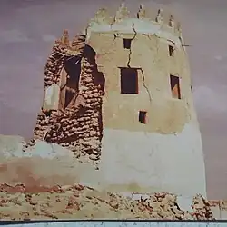One of the towers of Darin Castle before its collapse in 1978. -