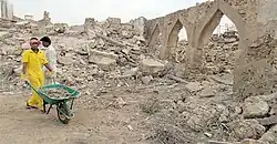 - March 2013: Removing rubble and debris from the palace, General Authority for Tourism and Antiquities branch in the Eastern Province began removing the rubble and debris that fell inside the building from the Mohammed bin Abdul Wahab Palace.[93] The removal of rubble from the collapsed rooms and walls of the palace revealed that the site has preserved some of its walls and foundations, workers at the site confirmed that the cleanup took weeks to complete.[94] The cleanup was followed by a search for documents related to the palace, and then the excavation process, according to Dammam Museum Director Abdulhamid Al-Hashash.[95]