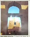 In 2014, the research and excavation team of the Saudi Commission for Tourism and National Heritage found a complete set of glass, pottery, and ceramic vessels that likely date back to different eras.[22] In addition to some pottery pieces dating back to the early periods of the Islamic era.[23][24] Some bones suspected to be animal bones were also found.[25] Finally, the castle has a monument on its southern side that chronicles the treaty that King Abdulaziz signed with the British.[26][27]