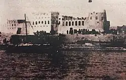![]() A view of one of the towers of Darin Castle with the façade of Al Faihani Palace overlooking the sea | |