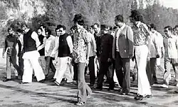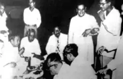 Mujib was enrolled in Gimadanga Primary School in 1927.[33] In 1929, he entered the third grade of Gopalganj Public School. His parents transferred him to Madaripur Islamia High School after two years.[34] Mujib withdrew from school in 1934 to undergo eye surgery. He returned to formal education after four years owing to the severity of the surgery and slow recovery.[35] Mujib was 18 years old when he was married to eight years old Fazilatunnesa, widely known in Bangladesh as Begum Mujib, in an arranged marriage, according to the custom of the region at that time. They are second cousins.[36][37][38][39]