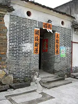 Within the village there also stands a Tin Hau Temple, village hall (sun teng) or shrine and several Ancestral rooms (xi fong). The temple is decorated and very well kept by the villagers. It was built around 1912-1913.[5] It is located about 50 metres away left as one faces the village door.