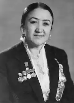 - ^ "Указ Президиума Верховного Совета СССР О присвоении почетного звания народного артиста СССР работникам искусств Узбекской ССР" [Decree of the Presidium of the Supreme Soviet of the USSR On conferring the honorary title of People's Artist of the USSR on art workers of the Uzbek SSR]. Pravda Vostoka (in Russian). No. 65. 19 March 1959. p. 1.