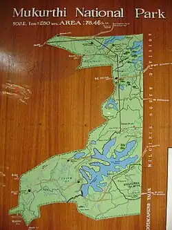 Mukurthi National Park is a 78.46 km2 (30.29 sq mi) national park in the western Nilgiris mountains of Tamil Nadu in South India. It was created to protect its keystone species, the Nilgiri tahr.[1] It is part of Nilgiri Biosphere Reserve, India's first International Biosphere Reserve. As part of the Western Ghats, it is a UNESCO World Heritage Site since 1 July 2012.[2] It is characterised by montane grasslands and shrublands interspersed with sholas, high rainfall, near-freezing temperatures and strong winds. It harbours Bengal tiger and Asian elephant.