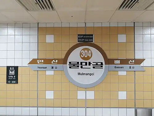 Mulmangol Station (Korean: 물만골역) is a station of Busan Metro Line 3 in Yeonsan-dong, Yeonje District, Busan, South Korea.