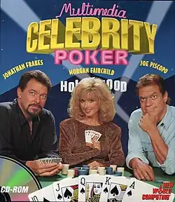 Multimedia Celebrity Poker is a simulation of the card game poker, in which the player competes with celebrities Jonathan Frakes, Morgan Fairchild and Joe Piscopo. The actors are presented via full-motion video.[2]