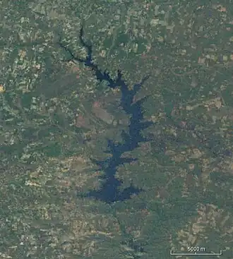 The manmade lake created by the Mulungushi Dam is approximately 20 km (12 mi) long and 2–3 km (1.2–1.9 mi) wide and is home to the Mulungushi Boat Club (MBC) and a local fishing competition.