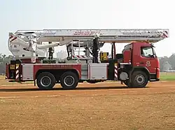 The Mumbai Fire Brigade's first response vehicles are fire fighting trucks known as Motor Pumps, equipped with ladders, water tanks, and hydraulic rescue tools.[15] Currently, the Mumbai Fire Brigade uses MPs manufactured by Tata and MAN.[15] For larger fires, the Mumbai Fire Brigade uses brigades known as 'Jumbo Tankers' which have the capacity to hold between 14,000 and 18,000 litres of water.[15] The Mumbai Fire Brigade also uses a number of specialised ladder trucks, for high-rise fires, manufactured by Volvo, MAN, and Mercedes-Benz. These include trucks with aerial ladder platforms, turntable ladders and hydraulic platforms.[15] The Mumbai Fire Brigade's fleet currently consists of 56 fire engines, 21 jumbo tankers, and 18 specialised vehicles including 6 hydraulic platforms.[11] The brigade also has 29 ambulances, and 6 beach safety units.[11]