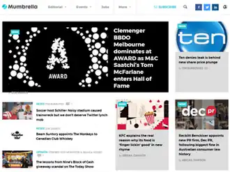 Mumbrella is an Australian marketing and media industry news website. It was started in December 2008 by Tim Burrowes, and has since gone on to become a popular source for news, analysis and commentary on the advertising, PR, and media industries. As of 2021, its parent company is Focal Attractions.