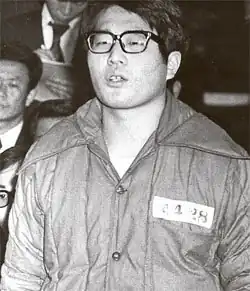 Stealing a Smith & Wesson .38-caliber revolver from an Osaka police box on 18 July 1974, he concealed it in his luggage and flew to South Korea on 8 August 1974,[1] using a Japanese passport to enter the country.[2] He then booked into the Chosun Hotel.[1]