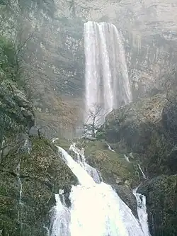 The Mundo river is known for its picturesque source (Reventón del Rio Mundo), which is considered one of the world's most beautiful river sources. It originates from a cave in the middle of a tall cliff and forms a waterfall with a height of almost 100 meters. Subsequently, it forms a series of smaller cascades and pools. The cave itself is about 15 meters wide and 25 meters high and constitutes the end of a large cave system under the Calar del Mundo.[5]