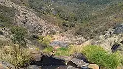 The park contains the 50-metre (164 ft) Lesmurdie Falls, formed by Lesmurdie Brook emptying over the Scarp, and the surrounding riparian and heath vegetation.[2] Wandoo, jarrah and marri trees can all be found within the park. A gravity hill exists near the carpark on Palm Terrace.