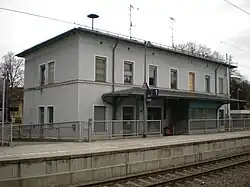 Kirchseeon station was opened on 15 October 1871 with the railway. From 1890, a forestry railway temporarily ran into Kirchseeon from the Ebersberger Forst (Ebersberg forest), which served to remove timber that had died as a result of an attack by black arches butterflies.[11] The station still has an entrance building. Today, the station is only served by the S-Bahn and has a "house" platform and a side platform. The side platform is accessible via an underpass. The station has an overtaking track for long-distance trains. Until the upgrade for the S-Bahn in the 1970s, there was a siding to a warehouse and a sawmill to the northeast of the station; the southern siding to the former sleeper factory and later FIAT/IVECO car/truck depot and a northern siding to the Raiffeisen warehouse were detached and partially upgraded during the construction of separate S-Bahn tracks in the mid-1990s.