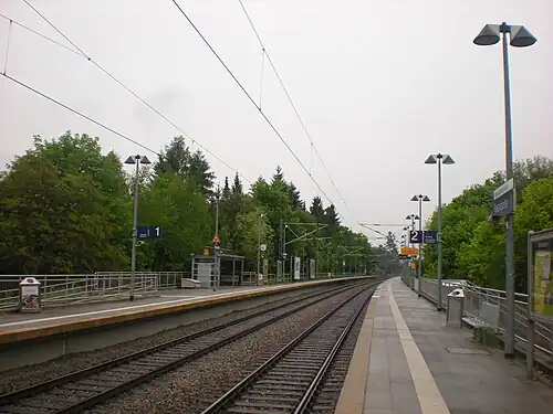 Munich-Fasangarten station is a suburban railway station on the S3 line in Munich. Located just at the southeastern city limits, it serves areas including the former Ami-Siedlung, a neighborhood populated mostly by U.S. military personnel and their dependents until the mid-1990s.