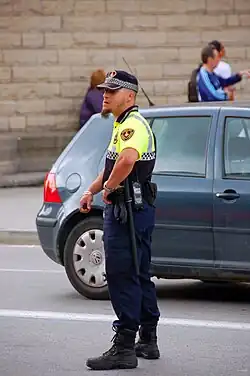 In Spanish towns and cities, the Policia Municipal (Municipal Police), also known as the Policia Local or Guardia Urbana, is a police force organized at the municipal level.[1] As of 2024, Spain has more than 75,000 local police officers distributed among all the autonomous communities.[2] Municipal police officers are armed.[3]