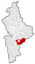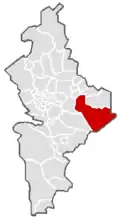 Outside the Monterrey Metropolitan Area, the state is sparsely populated. The largest municipality by population is Monterrey, with 1,142,994 residents (19.75% of the state's total), while the smallest is Parás with 906 residents.[1] The largest municipality by land area is Galeana which spans 7,068.30 km2 (2,729.09 sq mi), and the smallest is Abasolo, with 46.90 km2 (18.11 sq mi).[2] The newest municipality is Melchor Ocampo, established in 1948.[6]