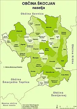 - ^ "Odlok o krajevnih in vaških skupnostih Občine Škocjan" [The Decree on Local and Village Communities of the Municipality of Škocjan] (in Slovenian). Municipality of Škocjan. Retrieved 7 July 2015.