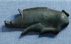 | Boar plaque[7][8] | A small copper plaque of a charging boar (100 millimetres (3.9 in) by 40 millimetres (1.6 in)). | 1st - 4th century AD | Copper alloy | Worthing Museum |