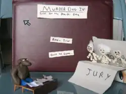 Murder Dog IV: Trial of the Murder Dog is a 2011 video game by Irish independent developer Stephen Gillmurphy, under the name thecatamites. Murder Dog is an adventure game which involves the player in a courtroom defense of the titular Murder Dog, a canine with a comically obvious penchant for murder. Whilst Murder Dog was satirical in nature, the game received recognition from many critics for its subversive commentary on the justice system.