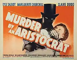 Murder by an Aristocrat is a 1936 American mystery film directed by Frank McDonald and starring Lyle Talbot, Marguerite Churchill and Claire Dodd.[1] The film was based on a 1932 novel of the same title by Mignon G. Eberhart, with sets designed by Hugh Reticker. It was the seventh of 12 B-mysteries released by Warner Bros. as part of their "Clue Club" series between 1935 and 1938.