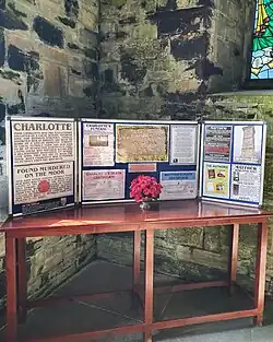 In 1978 the case underwent a televised reconstruction.[17] In 2001 the case was part of a historical exhibition at Shire Hall.[18] The exhibition involved a re-enactment of the trial.[19] In 2010 a local historian wrote a book on the murder.[20] Author Jill Batters presented a talk "The Life of Charlotte Dymond" at Liskeard Old Cornwall Society in 2019.[21]