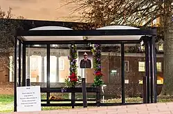 ![]() The site of the murder, a Shuttle-UM stop near Montgomery Hall on the University of Maryland campus, in December 2019. The bus stop was later razed after a memorial to Collins was dedicated nearby. | |