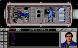 The game is controlled using the mouse to move the character and to point-and-click to examine or interact with characters or objects on the station. By clicking on an onscreen image of the player character, players can access 'thought mode', which provides an explanation of examined items, and 'speech mode', which provides topics the player can use to speak to other characters.[3] There are several interactive items of machinery on the station that feature minigames, including a telescope, manipulating arm, cryogenic machine and Manned Maneuvering Unit that allows the player to go outside the station.[6]