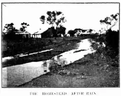 The station was on the market in 1905 and had a flock of 19,000 sheep, 500 cattle and 55 horses. There were many shallow wells and 23 windmills.[5] Divided into 15 large sheep paddocks, one large cattle paddock and ten smaller paddocks for horses or other stock, the station was sold later that same year to agents of Charles Atkins for the sum of £23,200.[6]