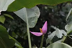 Musa ornata, the flowering banana,[2] is one of more than 50 species of banana in the genus Musa of the family Musaceae. Most of these species are large tropical evergreen perennials, mainly from lowland areas with high temperature and humidity. Musa ornata originated in southeast Asia,[3] and is cultivated for its commercial and ornamental value.[4] The fruit is attractive but tends to be inedible.[5]