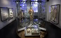 The museum is located in a building that was originally a convent in central Leiden. It includes a reconstructed traditional anatomical theatre. It also has many galleries that include the apparatus with which Heike Kamerlingh Onnes first liquefied helium (in Leiden), the electromagnet equipment used by Wander Johannes de Haas (a Leiden physicist) for his low-temperature research, and an example of the Leiden jar, among many other objects in the extensive collection.