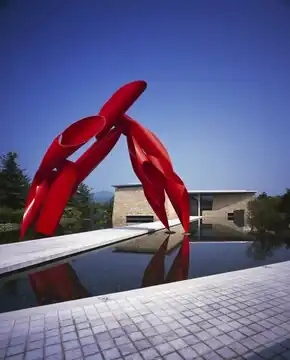 In addition to the main building, the museum includes a flower garden, water garden, stone garden, James Turrell exhibition hall, and outdoor sculptures including Alexander Liberman's sculpture, Archway.