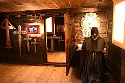 The Museum Walserhaus was opened in 1938 as the first ethnographic museum in the canton Ticino. For this purpose, a very old house from 1386 was made available and could therefore be preserved in its original structure.[4] From the beginning, the exhibition grew steadily. In 2006 the permanent exhibition was completely reorganized. Since then, the exhibition concept has expanded to include the nearby barn and the vegetable garden in front of the museum. Since 2009, the museum received another barn in which there is space for temporary exhibitions or handicraft workshops. In 2016, a project was launched to update and modernize the exhibition with a particular focus on upgrading the architectural heritage, the collection and the Ggurijnartitsch through an innovative method of presentation. Thanks to the project, the jobs of the curator and the guardian were preserved and work opportunities were offered to the residents and craftsmen of the village. The current exhibition, inaugurated in 2018, can now be seen in its modern form with updated technical infrastructure. In 2020 the Museum Walserhaus was nominated for the European Museum of the Year Award (EMYA).;[5] in 2021 it won the Meyvaert Award for Sustainability that goes to a museum which demonstrates an exceptional commitment to social, economic and environmental sustainability in how it operates and/or how it presents issues of sustainability in its displays and programmes.[6]