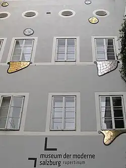 The Museum der Moderne Salzburg has two buildings at two different locations in Salzburg, Austria. The Rupertinum in the old town for new artistic concepts opened in 1983 and the Museum on the Mönchsberg for modern art in a contemporary setting opened in 2004.