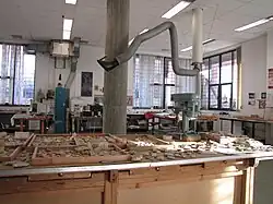 The museum has seven different laboratories and workshops. They are housed on 2750 m2 of space, each department has a fireproof storage room and a suction system for the indoor air. Like the entire museum, the workshops are air-conditioned; Temperature and humidity are kept constant, the fresh air (supplied from outside the museum) is filtered.