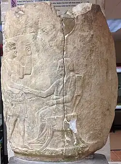 The Eastern Mediterranean is also represented by a representative range of Early Bronze Age to Iron Age pottery from Cyprus.[7] In addition to pottery and lamps from the Late Bronze Age to Hellenistic periods, the Greek collection includes both the Corinthian bronze helmet, mentioned above, and a fragment of a Late Classical marble lekythos from Attica, showing the deceased Leonike and her husband Kalliphanes (Clairmont Catalogue 7.330).[8]