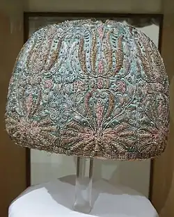The museum was founded in 1961 to provide the Farnham community with a collection dedicated to the history of the local area in an elegant Grade I listed Georgian townhouse[1] which still retains many original features, including a walled garden. Spread over two floors and in six rooms, displays include items from a large and eclectic collection; from ancient archaeological artefacts to nationally important artworks by local artists and an extensive costume collection.[3] Permanent displays include an elaborately embroidered nightcap belonging to Charles I, who in 1649 stayed in a nearby house on his way to trial in London;[4] a decorated and gilded cassone panel by W. H. Allen; artworks of local scenes by John Verney,[5] and objects connected with William Cobbett.