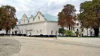 The branch was established by government order in 1963 under the name "Golden Chamber" as a division of the State Historical Museum of the Ukrainian SSR.[1] The initial collection was created in accordance with the order to transfer works of precious metals and gemstones from twenty museum institutions.[1] The newly established museum facility was adapted in building No. 12 (Kovnirivsky Building) on the territory of the Kyiv Pechersk Lavra, the former monastery bakery, and bookstore.