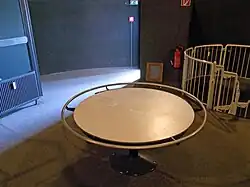 The camera obscura provides a 360° panoramic view of the Garden Show grounds and the Ruhr promenades. On the projection table, all objects at a distance of 13 meters from the tower to the horizon can be shown in sharp focus.[4]