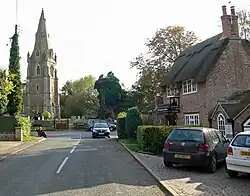 Muston Meadows is a nearby 41-hectare (100-acre) grassland nature reserve featuring 33 types of grass and over 100 other species of flowering plant.[4] The reserve is notable for its colony of over 10,000 Green-winged Orchids.[5] The 14th-century cross on the village green is a Grade II* listed structure.[6] The Viking Way, a long-distance footpath between North Lincolnshire and Rutland, passes one-half mile (0.80 km) to the east of the village.