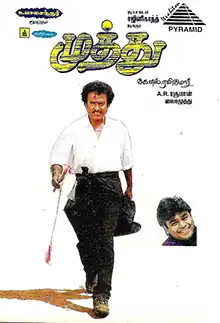 Muthu is the soundtrack album composed by A. R. Rahman for the 1995 Tamil-language film of the same name starring Rajinikanth and directed by K. S. Ravikumar. It is the first film where Rahman, Rajinikanth and Ravikumar worked together.[1][2] The album has six tracks with lyrics by Vairamuthu.[3] The Hindi version is titled Muthu Maharaja and had lyrics penned by P. K. Mishra,[4] whereas the Telugu version of Muthu is penned by Bhuvana Chandra.[5] Recording of the songs took place at the composer's Panchathan Record Inn studio in Chennai. The soundtrack was released on 8 October 1995 under the Pyramid label.[3] The Telugu version of the soundtrack was released under Aditya Music, and Saregama distributed the Hindi soundtrack.