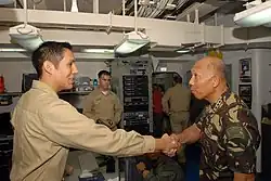 In a follow-up to the signing of the Manila Declaration, the US and Philippine representatives met in 2011 to sign onto a new partnership strengthening the economic and defensive ties of the two countries. This new formal agreement was termed Partnership for Growth.[14] This agreement came as a part of President Obama's Global development initiative, which was designed to strengthen the Philippines business development and commercial ties between the two countries.[15] During the signing ceremony of this agreement, Secretary Clinton reaffirmed the US position on the mutual defense of the Philippines through the statement "The US will always be in the corner of the Philippines. We will always stand and fight with you to achieve the future we seek".[16] By 2017, this had evolved into Partnership for Growth with Equity, in line with the 2017-2022 Philippine Development Plan.[17][18]