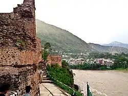The architecture of the fort shows that great experts in design and structure participated in its construction. It is surrounded on three sides by the Neelum River (formerly known as the Kishan Ganga River[5]). The northern part of the fort had terraces with steps leading to the bank of the river. The main gate on eastern side was very well protected from the hazards of flood waters, but some parts on the north side have suffered damage. There used to be an inn at the entrance to the fort, but only traces of that structure remain now.[1][2]