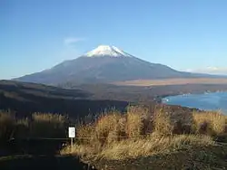 Myōjinyama (明神山) is a grassy area on a mountain ridge in Japan, 20 kilometres (12 mi) east from Mount Fuji and 5 kilometres (3.1 mi) south-east from Lake Yamanaka, off of road 147. The area is suitable for hiking and paragliding.